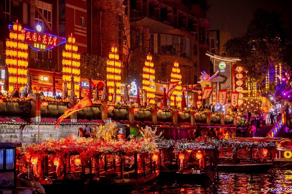 元宵佳节,夜游锦江延续“幸福成都·龙腾万里”主题,推出特色元宵节庆活动,“龙九子”再临锦江,开启龙腾盛世沉浸式主题演绎;寻龙记华丽登场,在猜灯谜、画龙点睛、财源滚滚、龙腾虎跃等一系列民俗小活动中重温龙年春节的魅力;星河入梦,用10001盏许愿灯球,将新年期冀化作一城浪漫;提灯夜游的汉服同袍,他们身着各朝代汉服,展示着中国传统服饰的美,同时也将最纯粹的传统元宵民俗场景描绘得栩栩如生,向市民游客展现中国传统节日的丰富人文和深厚精神底蕴。