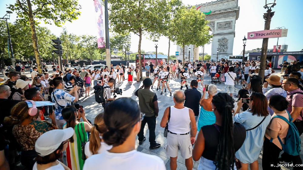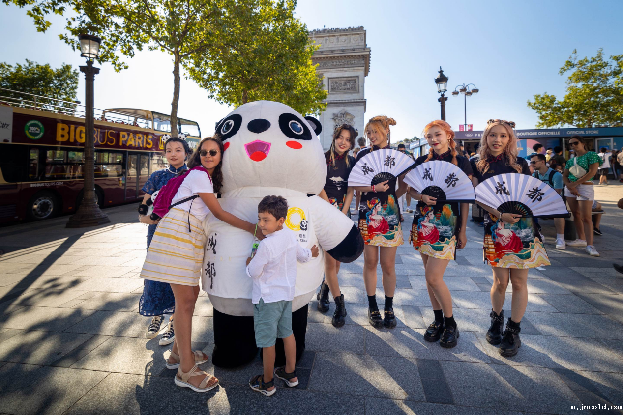 “花局看奥运,成都邀你来”。8月5日,在巴黎奥运会期间,成都市文广旅局精心策划了一场别开生面的文化展示与互动快闪活动在巴黎地标建筑凯旋门前举行。青春靓丽的舞蹈表演团队与大熊猫人偶“花花”一起,为现场观众带来了精彩的表演和互动体验,展示成都的魅力并邀请国际友人来成都体验独特的文化风情。