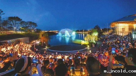 游客在成都世园会主会场观赏水幕光影秀。图据成都发布