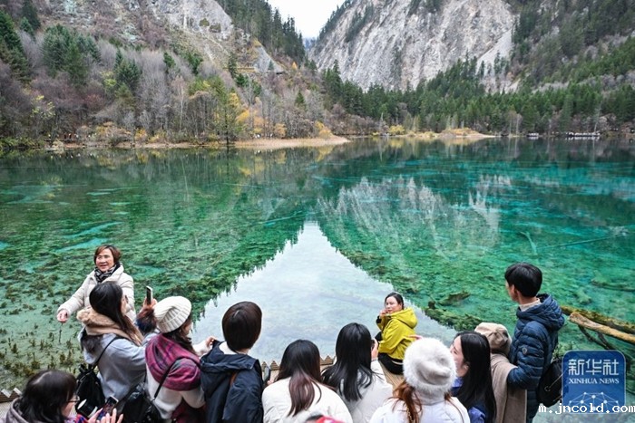 11月16日,游客在九寨沟景区五花海观光。新华社记者 王曦 摄