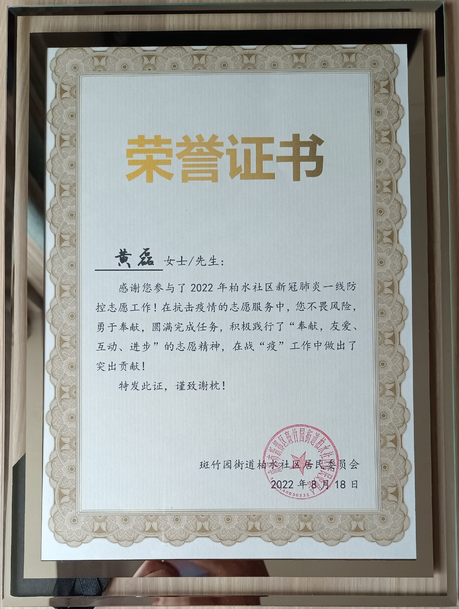 会员导游。成都9月份疫情期间加入了抗疫志愿者退伍。服务于成都市武侯区高攀西巷2号院,主要负责信息录入,及秩序维护。