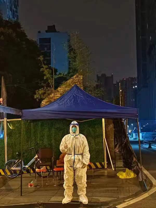 成华区七天封控期间,他在炎炎烈日下,每天顶着三十八九度的高温,为封控小区居民送上一日三餐以及消毒酒精、防护服等抗疫物资。此外还每天辅助核酸检测。在现场,志愿者们按照分工,各司其职、各尽其责,每个人都在高效地运转着,24小时随时待命。这就是他们每天的工作节奏。与被隔离群众同呼吸、共患难,携手构筑起疫情防控“安全防线”,用疫情防控的“志愿红”守护了曹县隔离人员的“健康绿”。