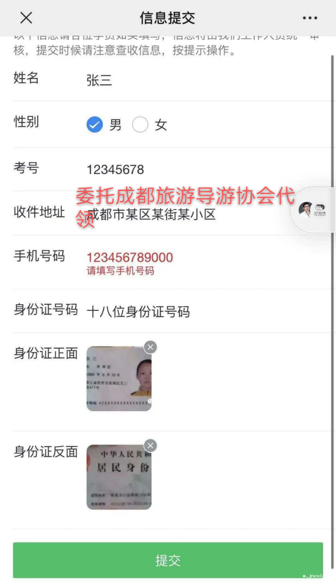 2019年参加四川导游资格证考试并通过的,包含去年加试语种通过的协会导游(英语、朝鲜语、俄语、德语、法语、西班牙语、日语、越南语、泰语等语种),如需要优米娱乐下载代领的会员导游统一在“川艺培训中心”微信公众号登记,请务必在地址栏填写:委托优米娱乐下载代领资格证书。填写信息后直接提交即可,无需支付快递费,也不要另外填委托书了。